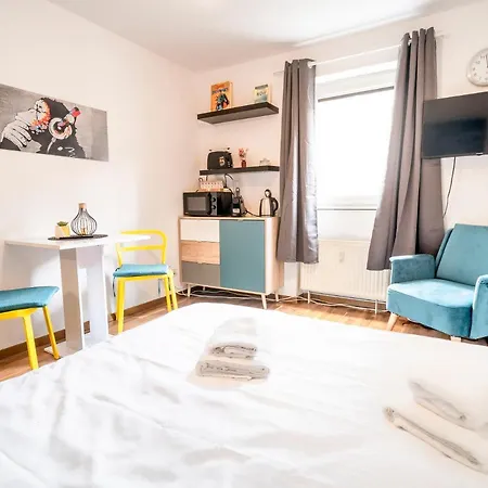 Hay hervidor eléctrico y nevera para tu comodidad. Además, el establecimiento está equipado con servicio de tetera/cafetera. Se tarda 5 minutos a pie en llegar al Cafe Prag y Restaurant C Five. Está a poca distancia de la estación de autobuses Rheinstrasse.